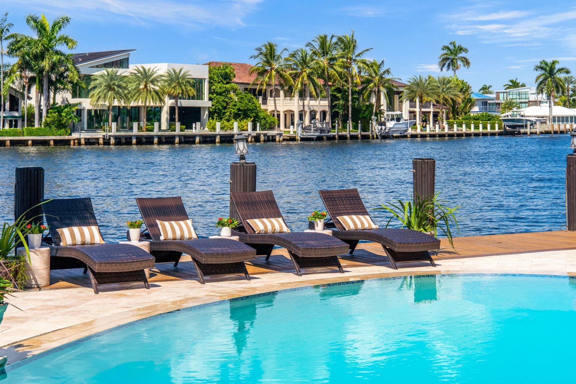 A vision of coastal grandeur, this palatial estate graces one of Fort Lauderdale's most coveted point-lot settings w/ over 200ft on the water. Tucked away at the end of a peaceful cul-de-sac, moments from the beach. Soaring ceilings and walls of glass illuminate a two-story great room w/ dual living areas, formal dining, & a gourmet kitchen w/ double appliances designed for both family living and effortless entertaining at scale. Each bedroom is complemented by an en-suite bath and walk-in wardr...A vision of coastal grandeur, this palatial estate graces one of Fort Lauderdale's most coveted point-lot settings w/ over 200ft on the water. Tucked away at the end of a peaceful cul-de-sac, moments from the beach. Soaring ceilings and walls of glass illuminate a two-story great room w/ dual living areas, formal dining, & a gourmet kitchen w/ double appliances designed for both family living and effortless entertaining at scale. Each bedroom is complemented by an en-suite bath and walk-in wardrobe, blending comfort and sophistication.The wrap-around terrace frames mesmerizing sunset views over calm waters, while manicured grounds invite lounging, dining, & boating from your private dock-minutes from Ocean Blvd (A1A), Lauderdale-by-the-Sea, and Downtown Fort Lauderdale (Las Olas)