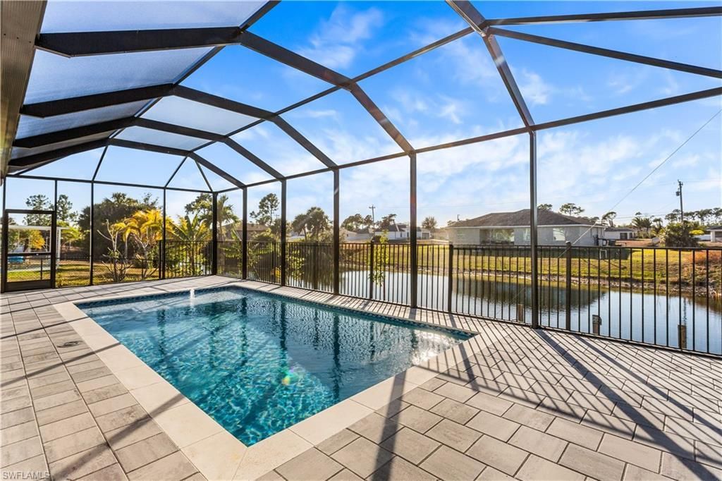 Beautiful New Construction Freshwater front (no Gulf Access) Home with Pool & Screened Lanai! Accepted terms: Cash, Conventional, VA, Lease-to-Own. Homeowners insurance $1,400-$2,100/year. Welcome to your new construction dream home in NE Cape Coral's SWFL paradise. This property is located in an area where no flood insurance is required, offering added peace of mind & potential savings for homeowners. Homeowners insurance $1,400-$2,100/year. This beautifully crafted residence offers perfect bal...Beautiful New Construction Freshwater front (no Gulf Access) Home with Pool & Screened Lanai! Accepted terms: Cash, Conventional, VA, Lease-to-Own. Homeowners insurance $1,400-$2,100/year. Welcome to your new construction dream home in NE Cape Coral's SWFL paradise. This property is located in an area where no flood insurance is required, offering added peace of mind & potential savings for homeowners. Homeowners insurance $1,400-$2,100/year. This beautifully crafted residence offers perfect balance of modern elegance, everyday comfort, and exceptional waterfront lifestyle. Featuring 1703 sq ft w/ 3 spacious bed, 2 full bath & flexible den/office, this home is ideal for those seeking space, style & versatility! Enjoy western exposure along freshwater canal, delivering spectacular sunset views, warm afternoon light & sun-drenched pool & lanai, perfect for evening relaxation & true SWFL waterfront living! Enjoy open-concept design highlighted by nice finishes, abundant natural light & seamless indoor-outdoor living. Full suite kitchen is fully equipped w/ stainless steel appliances, quartz countertops, beautiful island w/ electric cooktop, wall oven, dishwasher, microwave & refrigerator/freezer. Formal dining area overlooks the freshwater canal and private pool, with sliding glass doors opening to the screened lanai, perfect for entertaining or relaxing! Outdoors, a cantilever concrete dock invites fishing, kayaking, or jet skiing from your own backyard! The screened-in pool and lanai offer a private, low-maintenance outdoor retreat-ideal for year-round swimming, entertaining, and enjoying the Florida lifestyle with added comfort and protection. The primary suite offers lanai access, his-and-her walk-in closets, and a spa-style bath with dual sinks, soaking tub, and walk-in shower. A split floor plan provides privacy for guests, with a hallway bath that also serves as a pool bath. Tile flooring throughout enhances the home with a clean, modern look while offering durability, easy maintenance, and a cool, comfortable feel ideal for Florida living. This home places you at the NE upper corner of Cape Coral with quick access to I-41, enjoy easy day trips north toward Port Charlotte, Venice, Nokomis, and Sarasota, or south to world-class dining, shopping, and culture in Fort Myers, Naples, Marco Island. Spend weekends exploring pristine beaches like Boca Grande, Lovers Key State Park, Sanibel (world's capital of shelling!) or sunset strolls at Fishermen's Village in Punta Gorda. Outdoor enthusiasts will appreciate nearby parks, golf courses, nature preserves, and year-round recreation, while travelers enjoy convenient access to SWFL International Airport and Punta Gorda Airport, making regional and national travel effortless. Whether you're hosting poolside gatherings, enjoying peaceful canal views, or embracing the coastal Florida lifestyle, this home delivers comfort, convenience, and everyday Florida-style living. Schedule your private showing today!