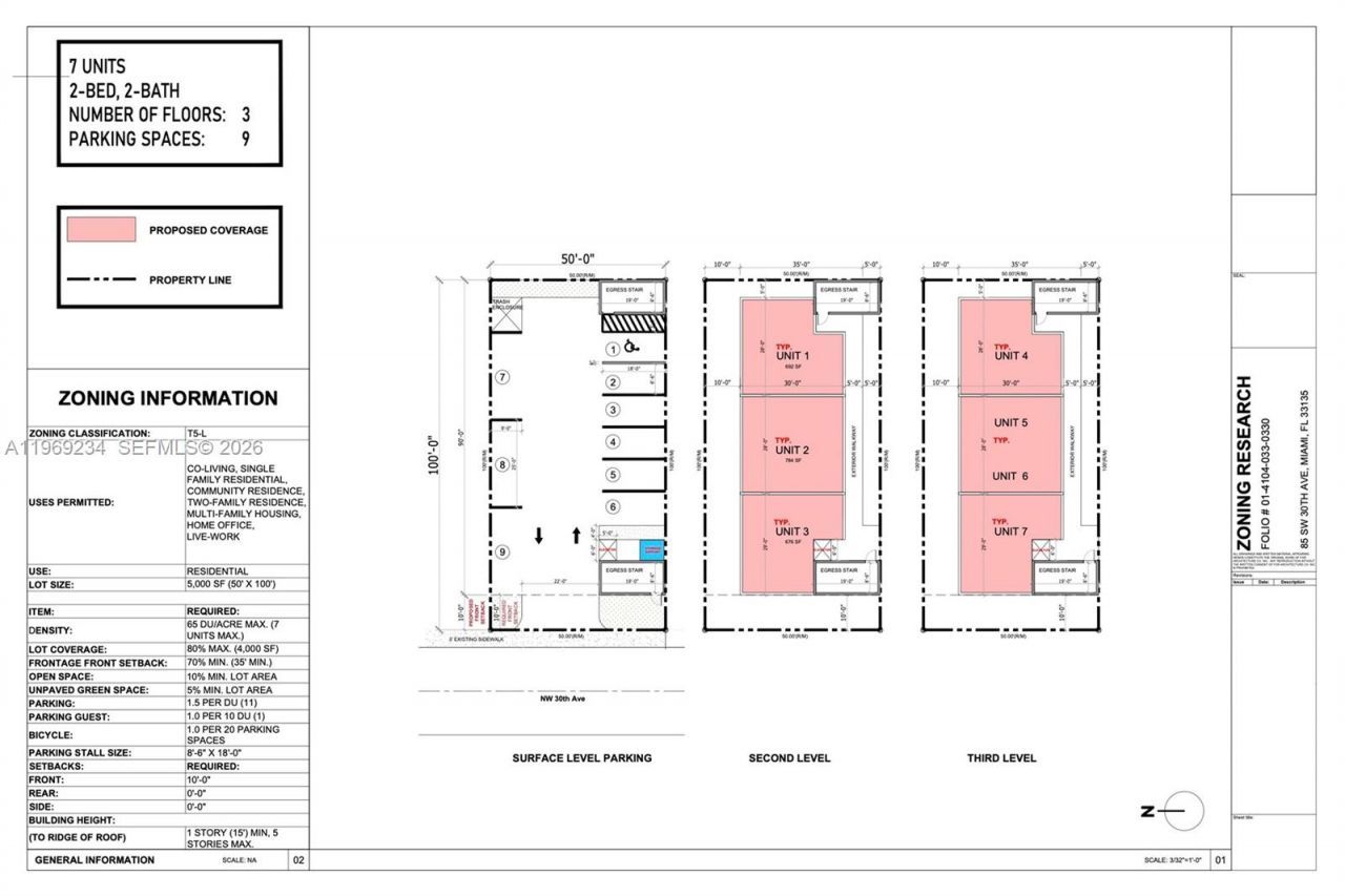 Amazing developer opportunity, 5,000 SQFT LOT, Zoned T5-L with no abutting T3 lots. The preliminary site plan shows 7 units by right with parking. 2/1 plus efficiency Single-family home on site , brand new roof. Can generate cash flow while getting approvals.